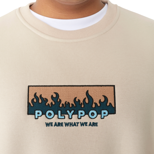 Polypop Fire Bej Unisex Sweatshirt